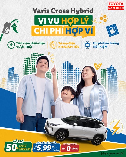 Vi vu mỗi ngày vẫn hợp lý, đi nhiều hơn mà vẫn hợp ví chỉ có thể là Yaris Cross Hybrid! Liên hệ TOYOTA NAM ĐỊNH để sở hữu ngay Yaris Cross và tận hưởng ưu đãi hấp dẫn: